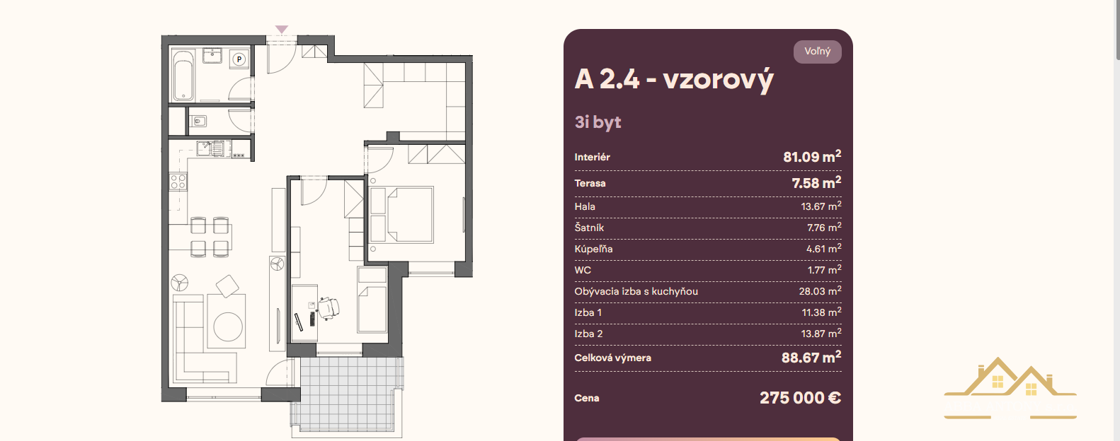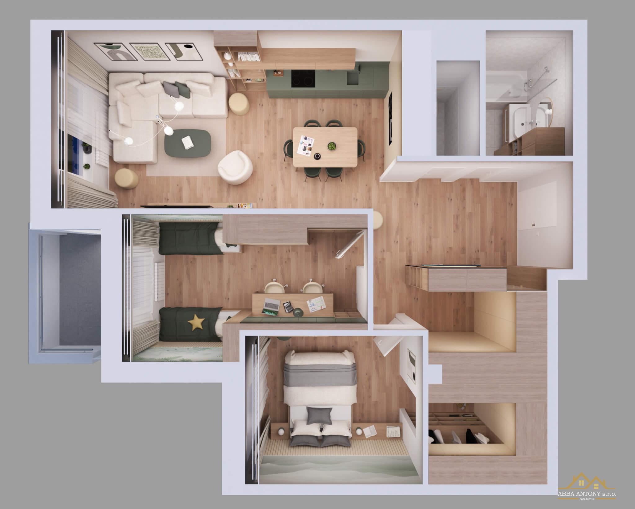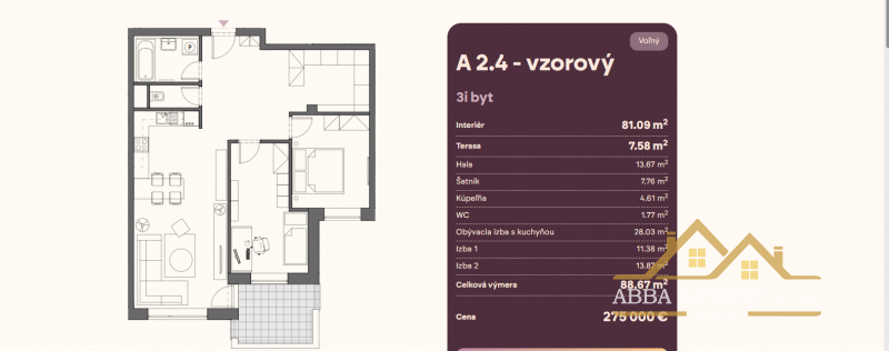Typ: 3-izbový byt (vzorový byt projektu)