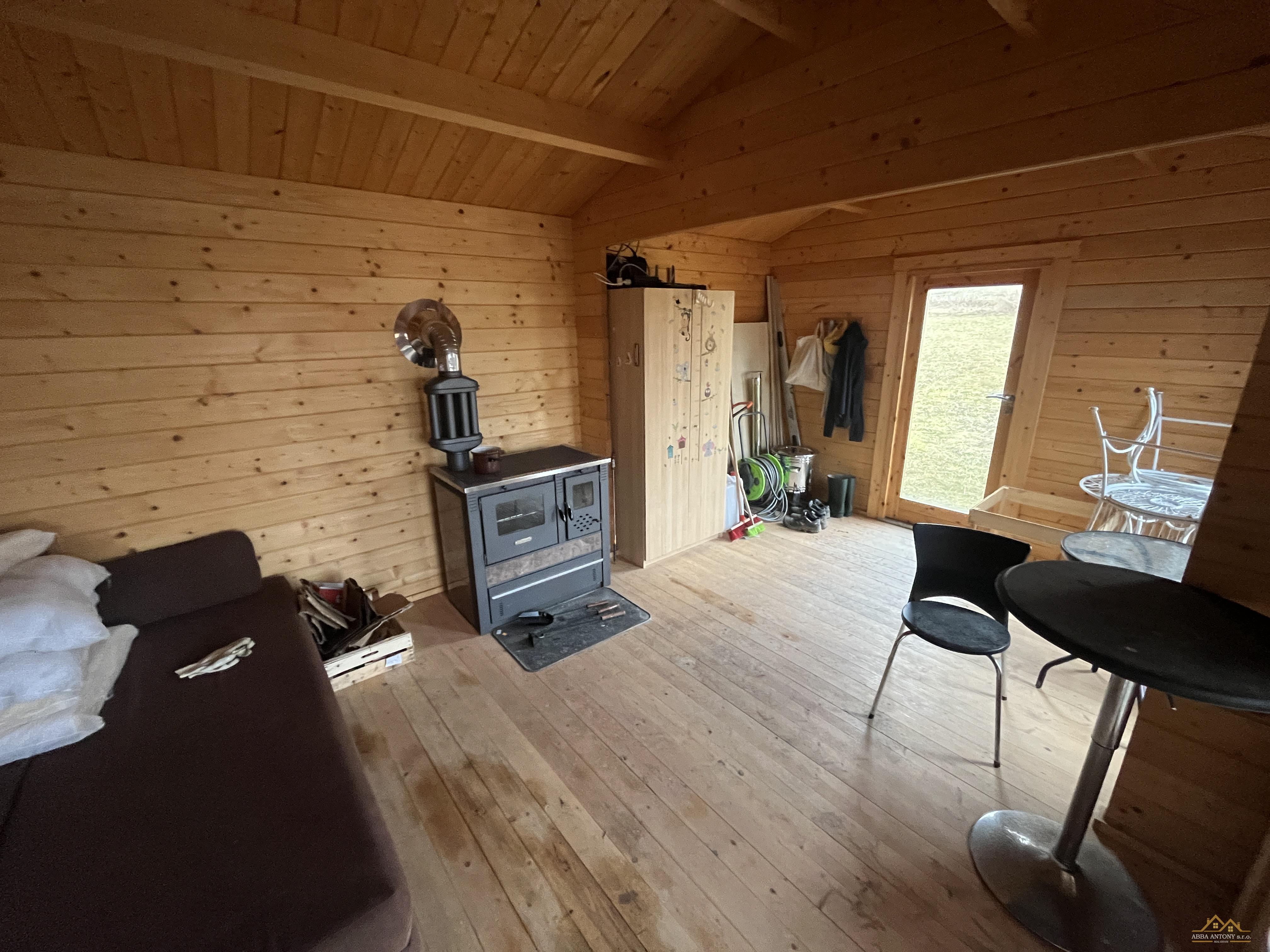 Nachádza sa v nej posteľ a pec na drevo.
