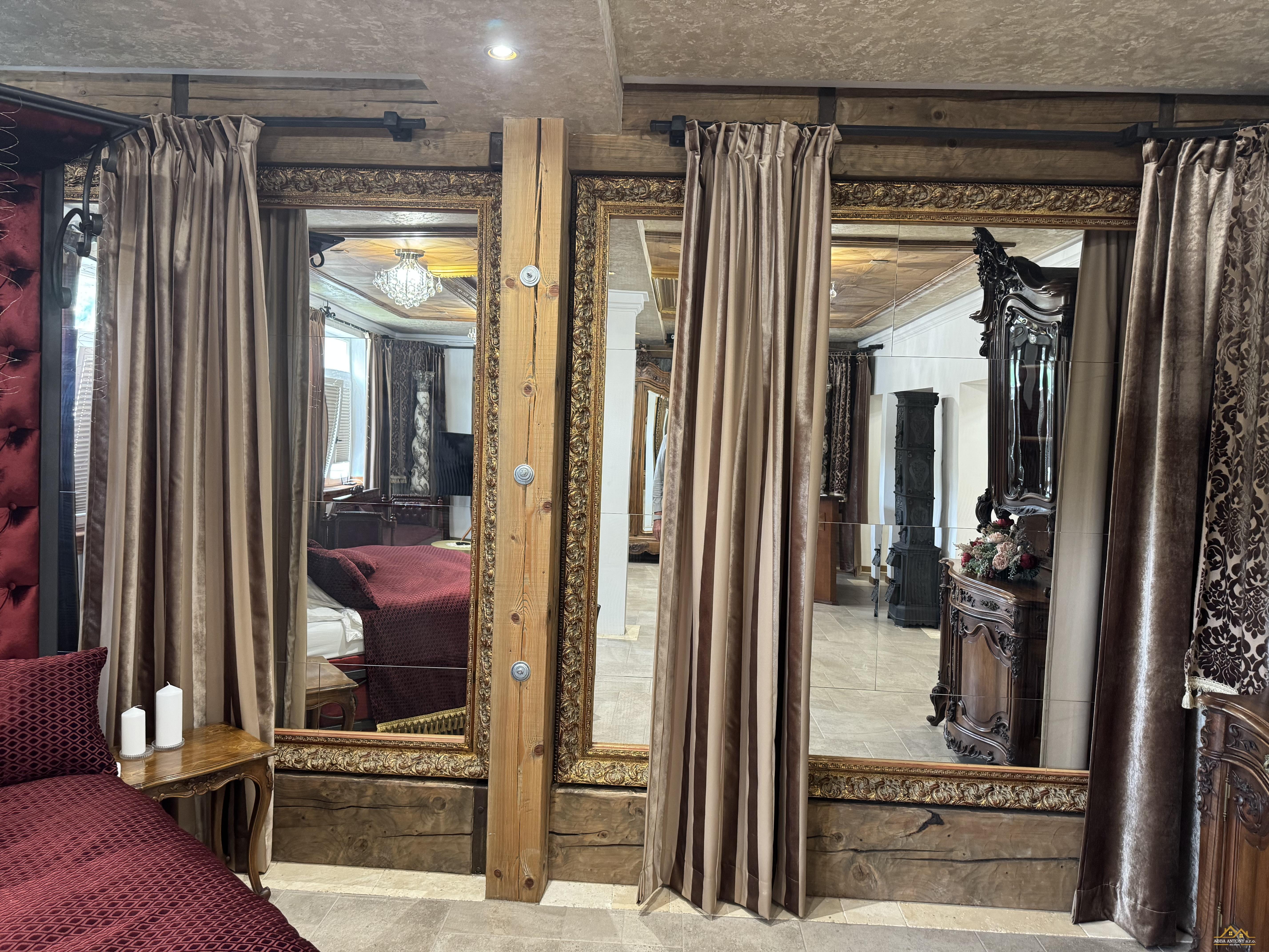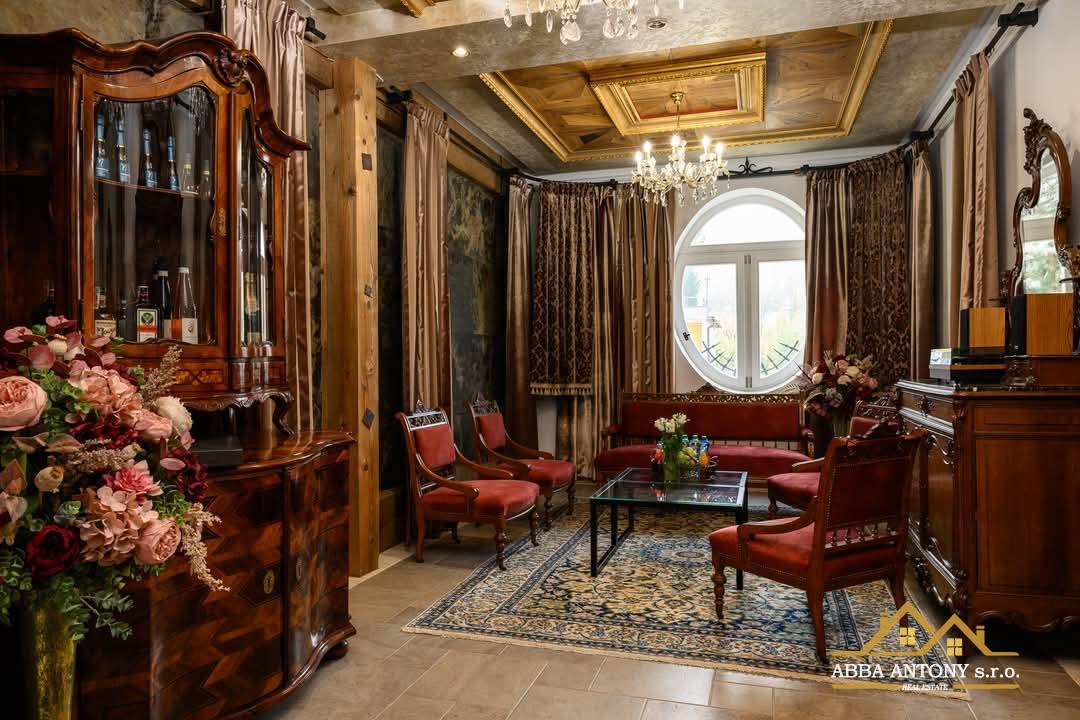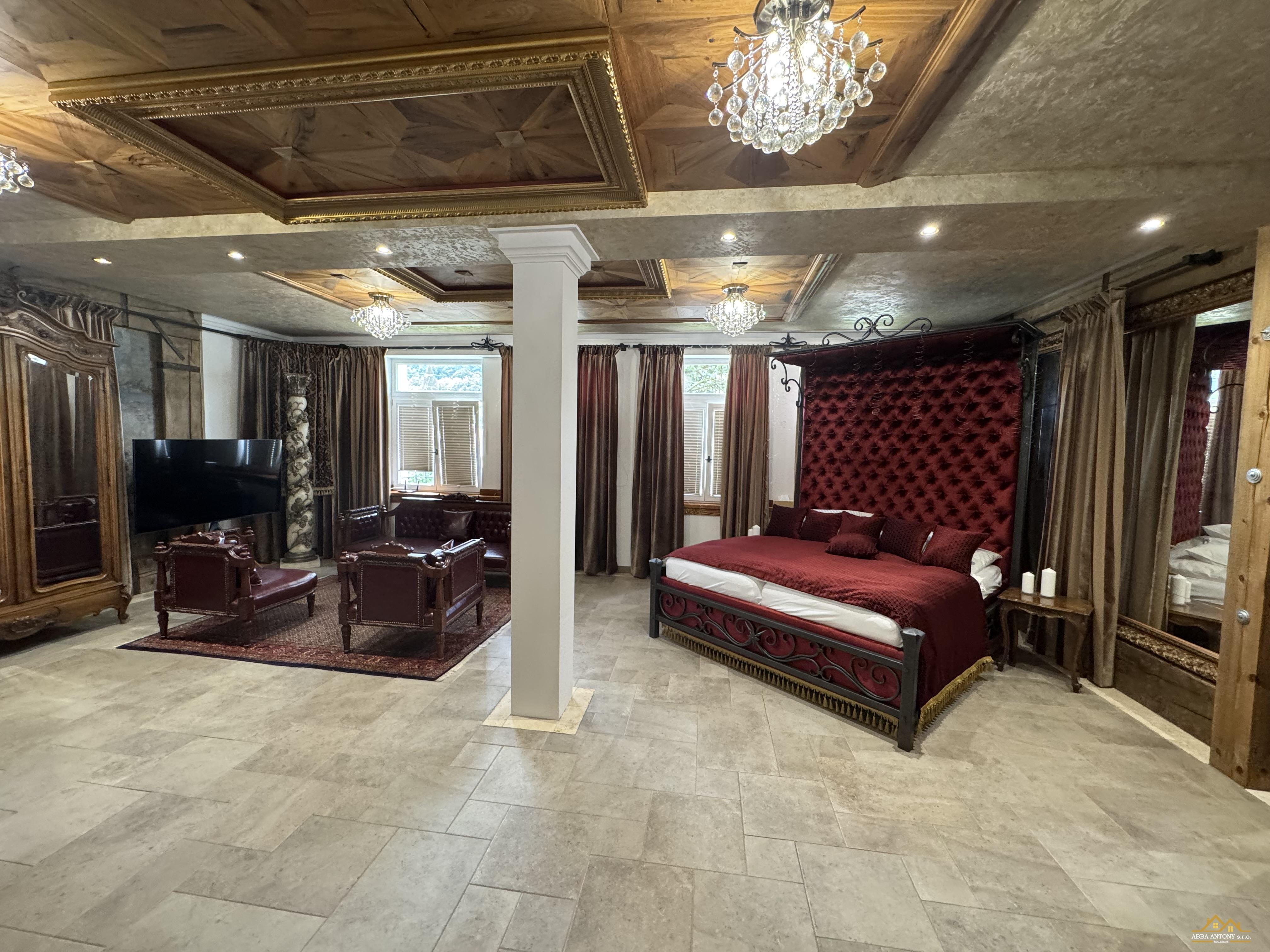 V podkroví sa nachádza 6 samostatných izieb, každá s vlastným sociálnym zázemím, ideálne pre ubytovanie hostí. Prízemie ponúka luxusný apartmán s rozlohou 180 m², priestrannú spoločenskú sálu s 60 m² a samostatný byt pre správcu, zabezpečujúci bezproblémovú prevádzku.