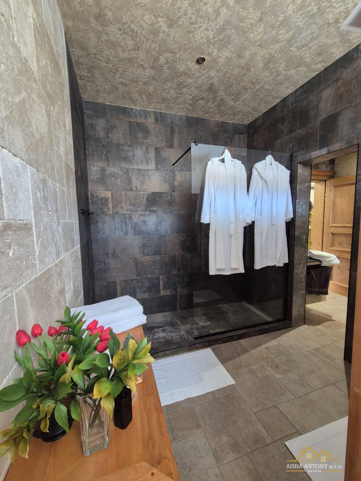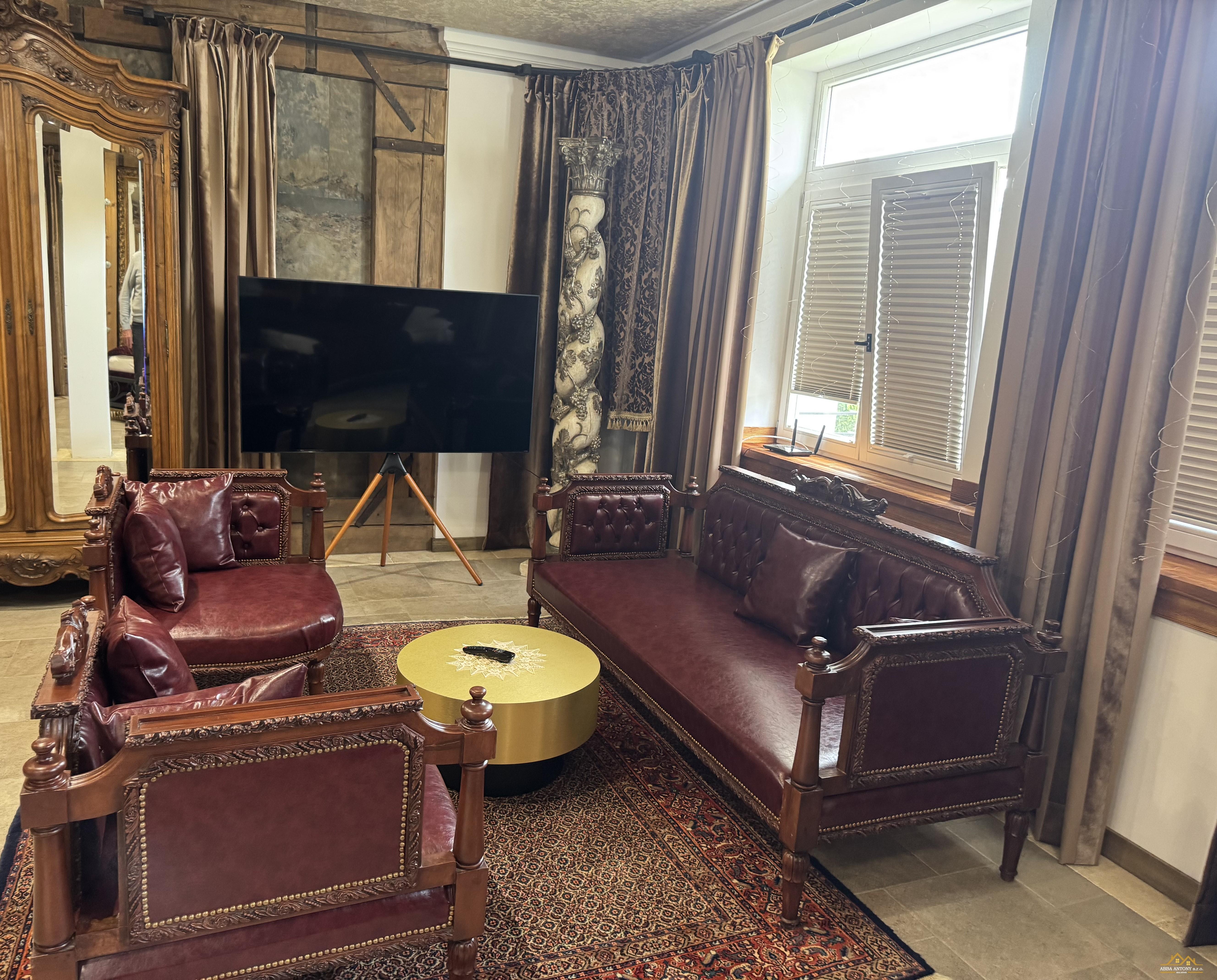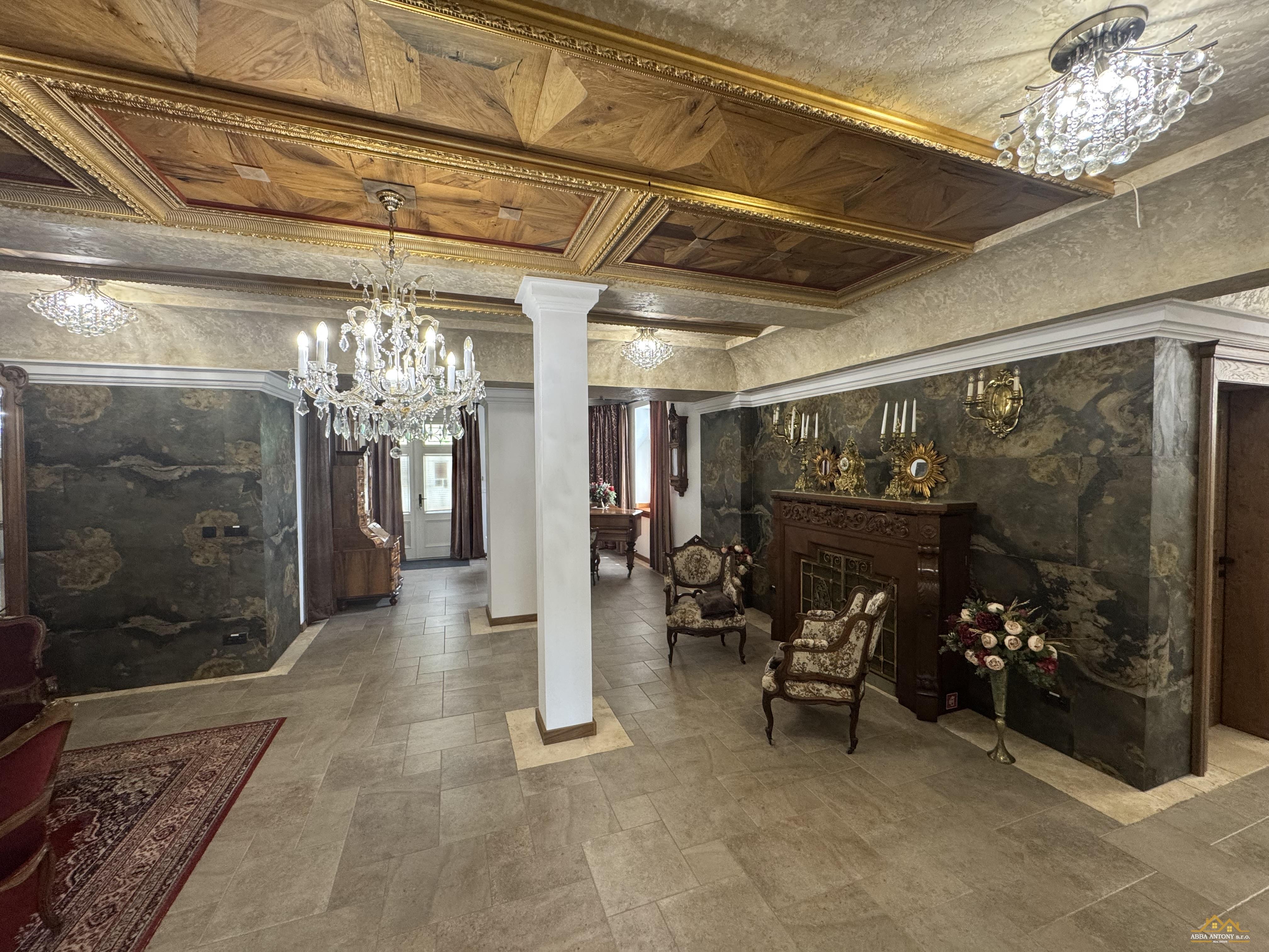 V podkroví sa nachádza 6 samostatných izieb, každá s vlastným sociálnym zázemím, ideálne pre ubytovanie hostí. Prízemie ponúka luxusný apartmán s rozlohou 180 m², priestrannú spoločenskú sálu s 60 m² a samostatný byt pre správcu, zabezpečujúci bezproblémovú prevádzku.