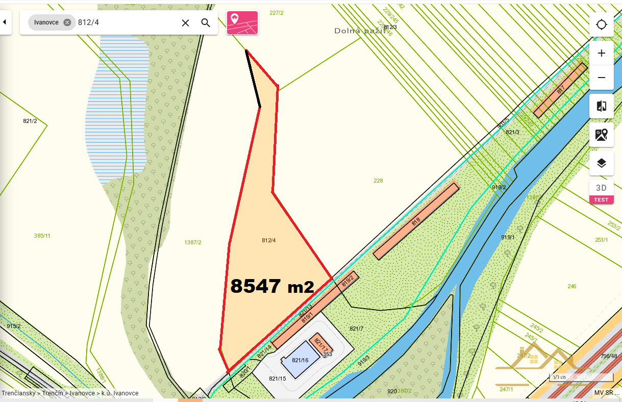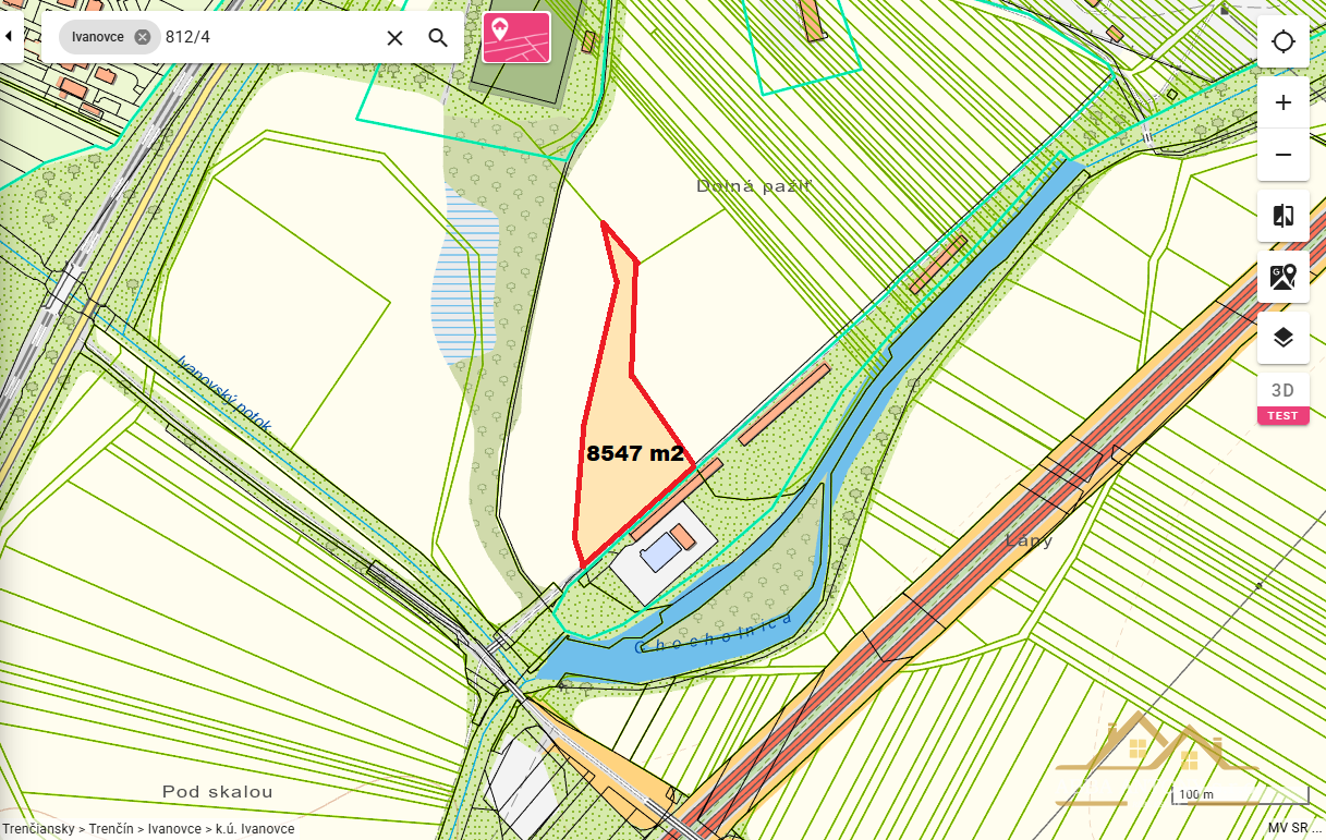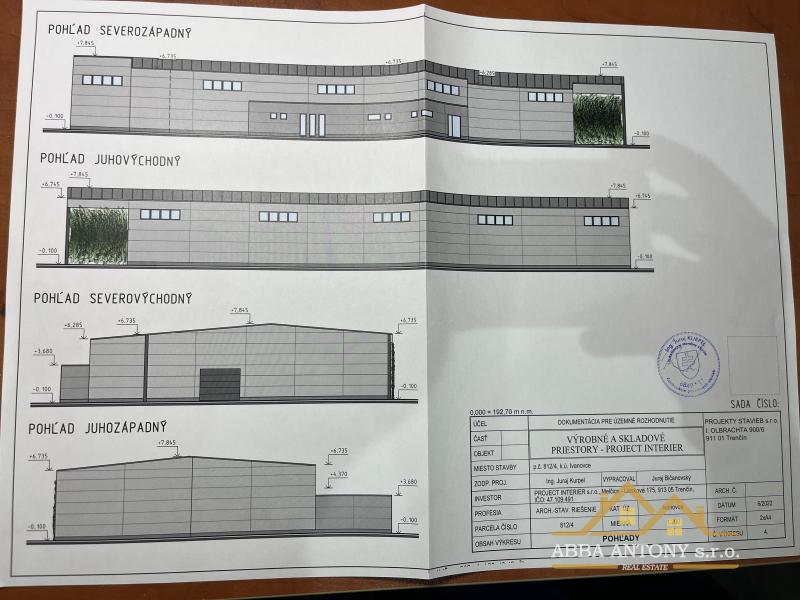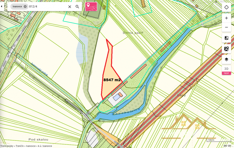 Ponúkame na predaj rozsiahly stavebný pozemok o výmere 8 547 m² v obci Ivanovce, ktorá sa nachádza iba pár kilometrov od krajského mesta Trenčín. Pozemok je ideálny pre výstavbu priemyselného alebo logistického objektu – už je vypracovaná štúdia na výstavbu dvoch hál s administratívnou budovou a parkovacími miestami.